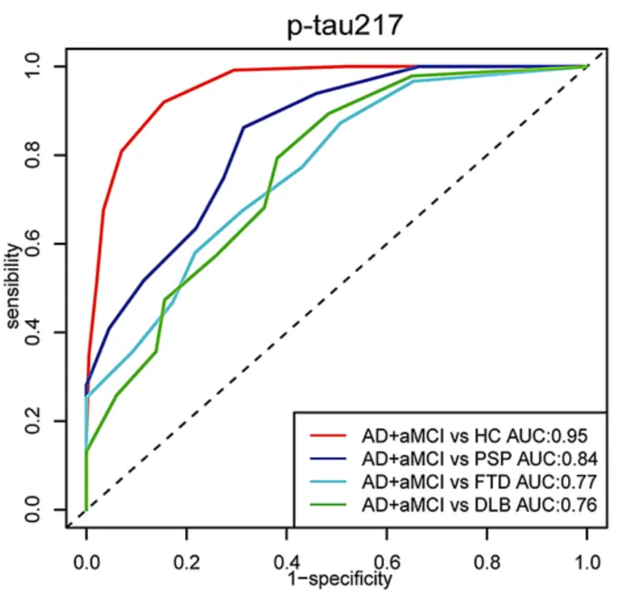 p-tau217是蘇氨酸217位點的磷酸化tau蛋白,與Aβ病理高度相關(guān),其水平升高直接反映AD相關(guān)的tau病理進程,最早在患者出現(xiàn)記憶下降前 10-20 年,就能在血液中檢測到 p-tau217 異常,為早期干預(yù)爭取時間。p-tau217在AD早期早期篩查、臨床診斷、疾病分期、疾病進展評估、癡呆類型鑒別,以及疾病修飾治療等多個應(yīng)用方向具有良好表現(xiàn),為AD無創(chuàng)血液檢測體系進一步提供關(guān)鍵依據(jù)。