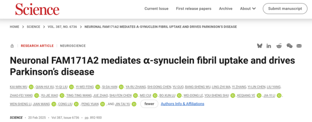 近期,國家神經(jīng)疾病醫(yī)學(xué)中心、腦功能與腦疾病全國重點(diǎn)實(shí)驗(yàn)室、復(fù)旦大學(xué)附屬華山醫(yī)院郁金泰團(tuán)隊(duì)發(fā)表于《Science》雜志的原創(chuàng)性成果,首次發(fā)現(xiàn)帕金森病全新治療靶點(diǎn)FAM171A2,揭示了FAM171A2作為神經(jīng)元膜受體在病理性α-syn傳播中的關(guān)鍵作用:通過特定內(nèi)吞途徑介導(dǎo)α-syn纖維內(nèi)吞的機(jī)制,還發(fā)現(xiàn)潛在抑制劑Bemcentinib,為帕金森病的治療提供了重要的理論依據(jù)和潛在干預(yù)靶點(diǎn)。